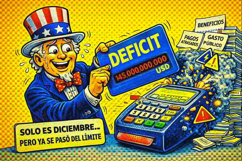 Estados Unidos cerró diciembre de 2025 con un déficit presupuestario récord de 145 mil millones de dólares, la cifra más alta registrada para ese mes, impulsada por gastos extraordinarios en beneficios, pagos atrasados y una combinación de ingresos que no crecieron al mismo ritmo. Esto evidencia que la máquina fiscal más grande del mundo sigue gastando más de lo que ingresa, y lo hace con el entusiasmo de quien usa la tarjeta hasta el límite cada quincena.