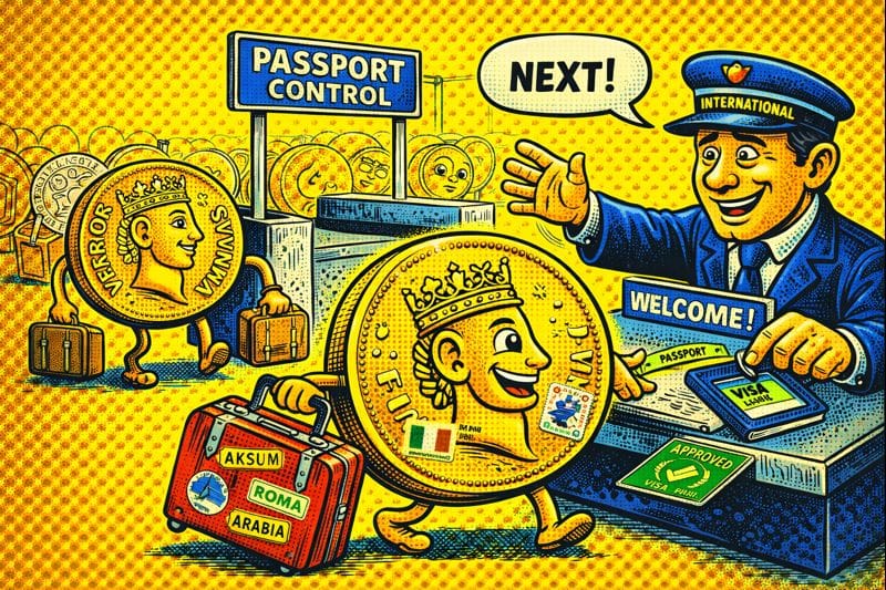 La moneda aksumita cumplía una función estratégica. Facilitaba impuestos, pagos al Estado y transacciones comerciales en puertos del Mar Rojo. Historiadores explican que acuñar oro era una declaración de solvencia: Aksum estaba diciendo “nuestro valor es confiable”. Las monedas incluso incluían inscripciones en griego, la lengua franca del comercio, lo que revela una comprensión temprana de confianza monetaria y estandarización.