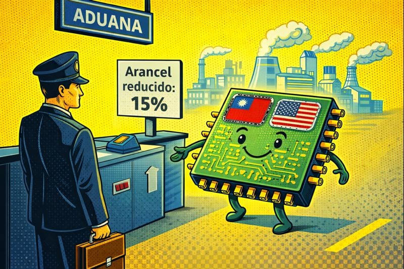 Estados Unidos y Taiwán cerraron un acuerdo comercial histórico centrado en la industria de semiconductores, en el que Washington reduce aranceles recíprocos a 15% para productos taiwaneses y, a cambio, las empresas tecnológicas y de chips de la isla se comprometen a invertir al menos 250,000 millones de dólares en manufactura avanzada y parques industriales en suelo estadounidense.