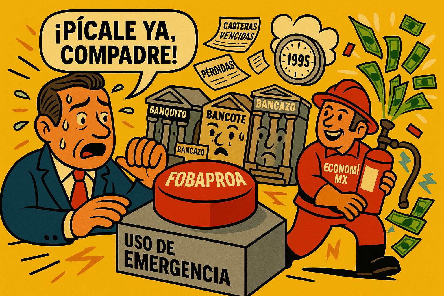 En 1995, en plena resaca del “error de diciembre”, México enfrentó una de sus peores crisis financieras: bancos al borde del quiebre, empresas sin liquidez y una economía que caía más rápido que el peso en casas de cambio. Para evitar un colapso total, el gobierno echó a andar un mecanismo emergente: el Fobaproa, que compraba cartera vencida de los bancos para evitar su quiebra inmediata con activos a largo plazo.