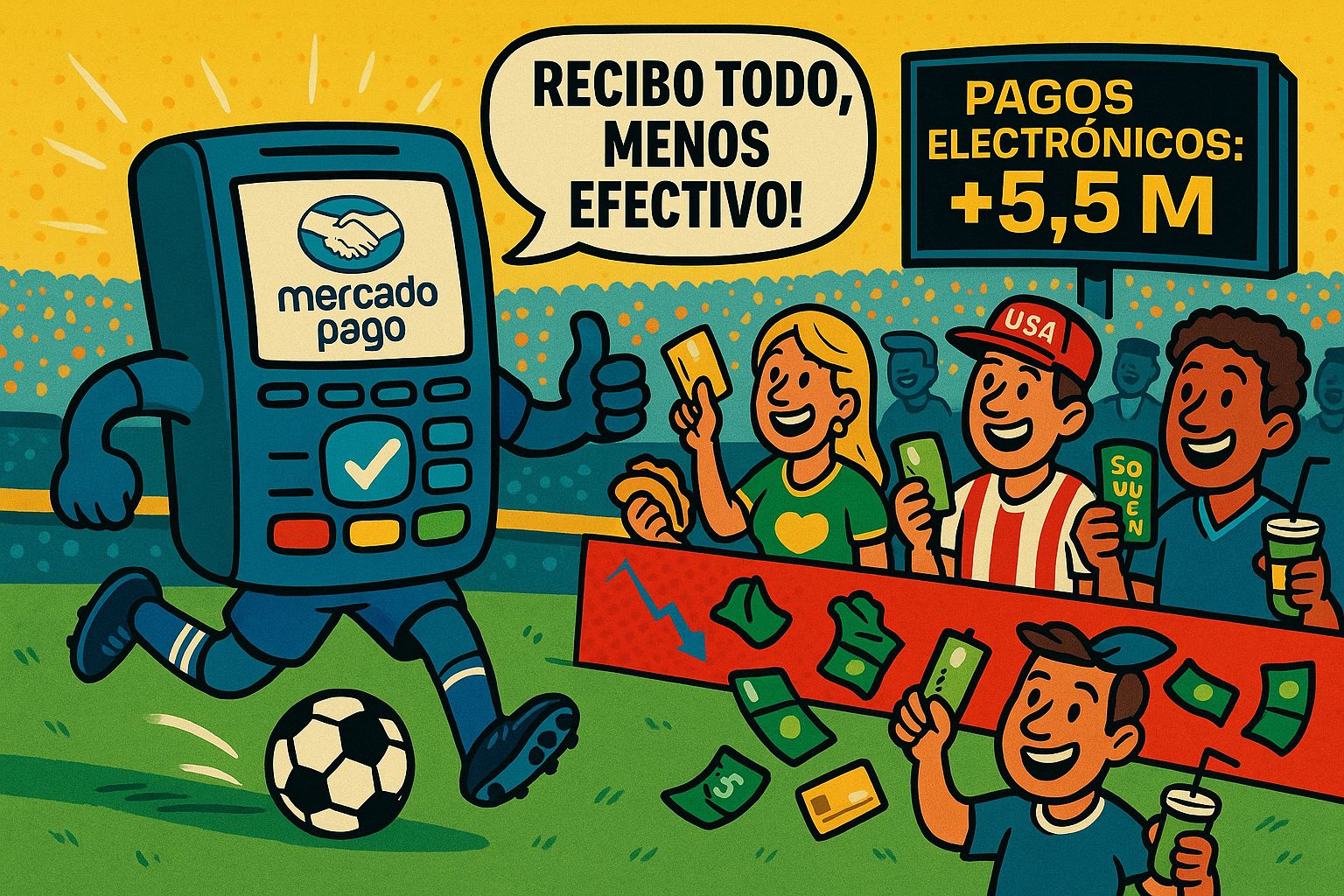Mercado Pago ve en el Mundial 2026 una gran oportunidad para acelerar la adopción de cobros electrónicos en México. Según sus ejecutivos, la llegada de más de 5.5 millones de turistas y una derrama económica de alrededor de 10,000 millones de pesos en el país puede empujar a más comercios a instalar terminales y ofrecer pagos digitales.