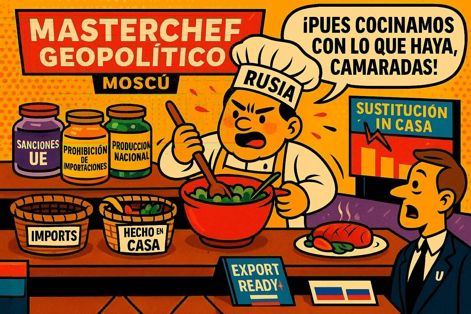 💡 Moraleja: cuando te cierran las puertas del súper, terminas sembrando en el patio. Rusia descubrió que las sanciones pueden doler, pero también empujan a reinventar la economía, pues lo que empezó como castigo terminó siendo una especie de “reto MasterChef geopolítico”: cocinar con lo que había… y terminar exportando el platillo.