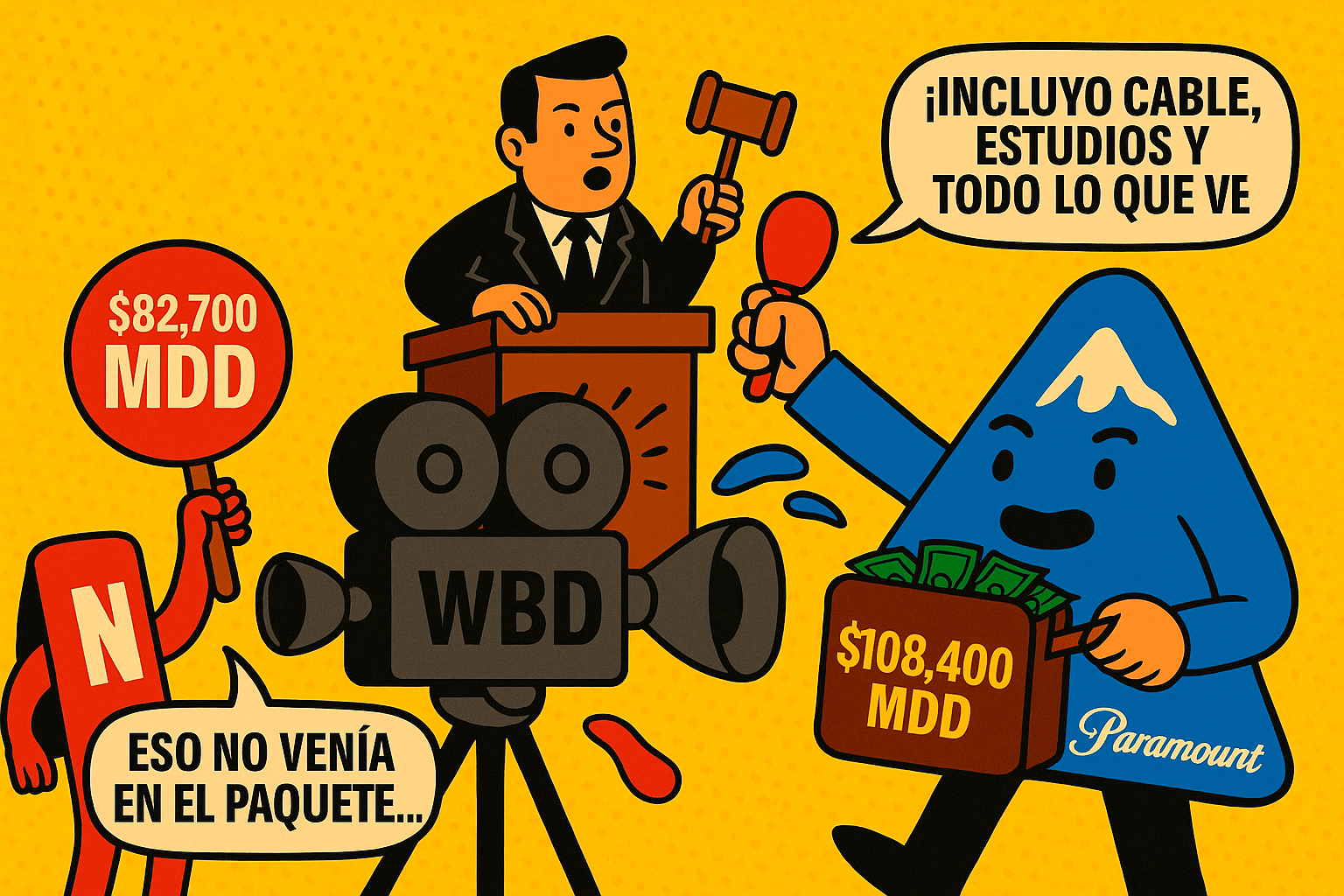 Paramount lanzó este 8 de diciembre una oferta hostil en efectivo para comprar la totalidad de WBD, poniendo sobre la mesa 108,400 millones de dólares, superando con creces la propuesta previa de Netflix, que rondaba los 82,700 millones. La maniobra representa una escalada en la guerra corporativa por definir quién domina el entretenimiento global en streaming, cine y televisión.